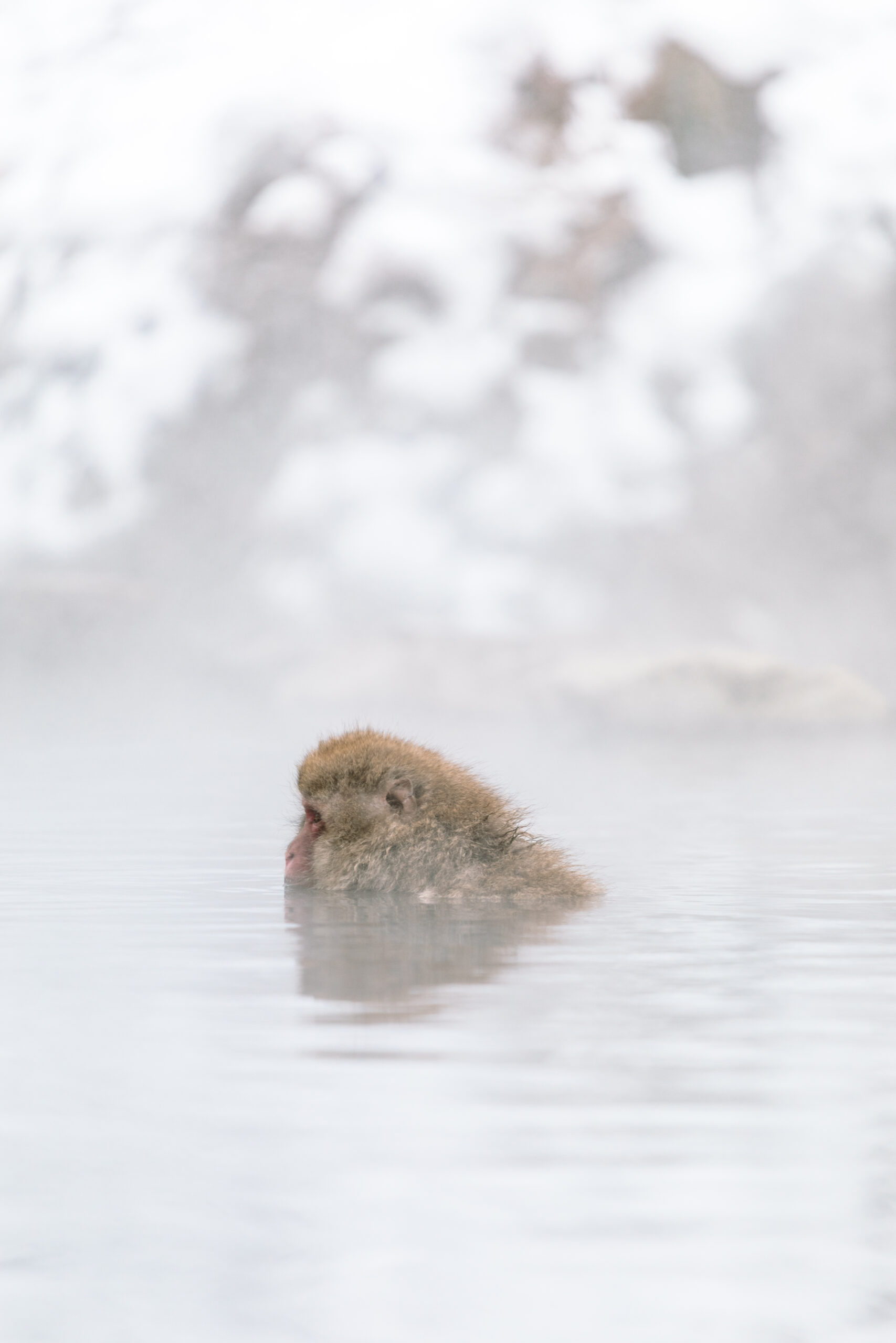 The troup of monkeys that frequent the hot springs are primarily females and children but the troup is organized in a strict hierarchy led by a dominant male, Tomamu 96 (born in 1996). Significantly larger than the other monkeys, Tomamu 96 has a large scar across his face, and always eats first during feeding time. Keep an eye out for Tomamu 96, but don’t get too close!